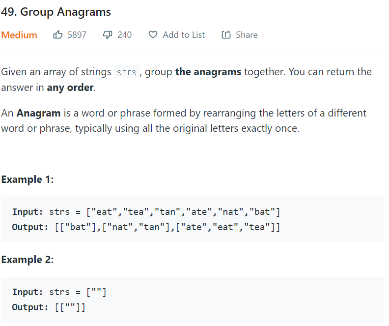 vector<vector<string>> groupAnagrams(vector<string>& strs) {