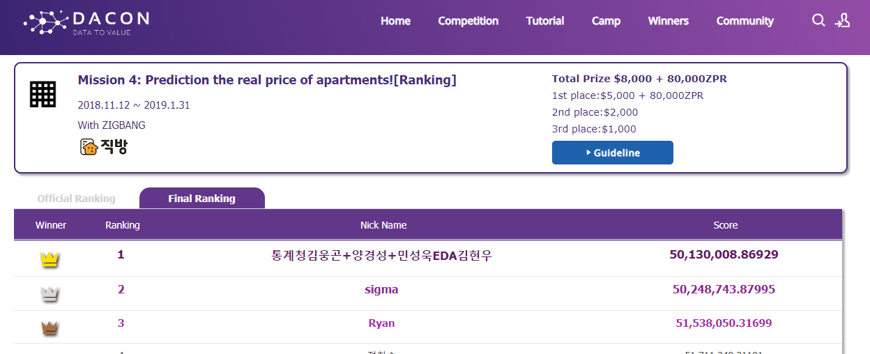 ˙ 직방-데이콘 부동산 가격 예측하기 대회 Prediction the real price of apartments! Final 1등