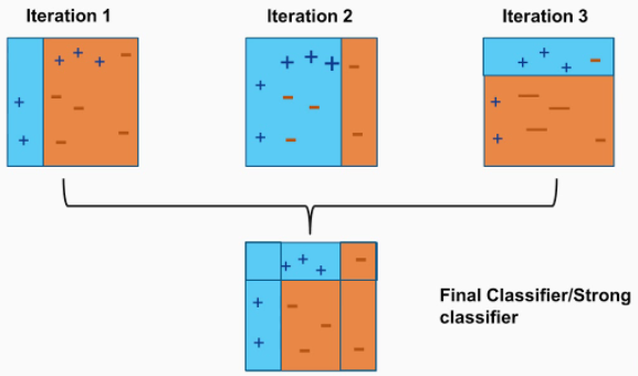 그림을 보면 Weak Learner는 Iteration1, Iteration2, Iteration 3 밑에 있는 모델이다.