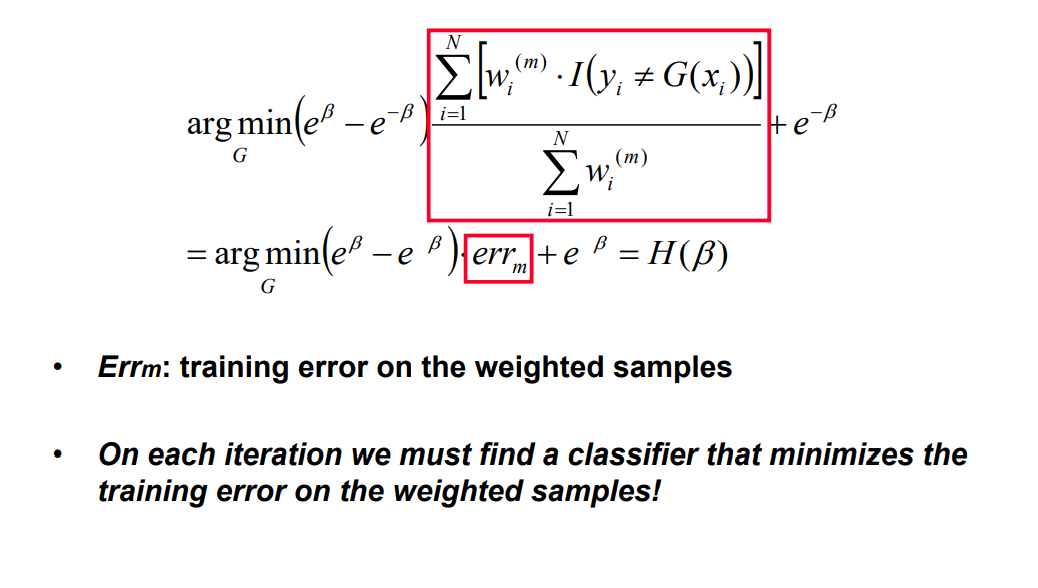 이때 이론적으로 ADABoost의 training loss를 최소화 할 수 있다.