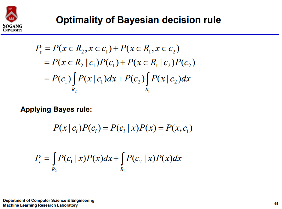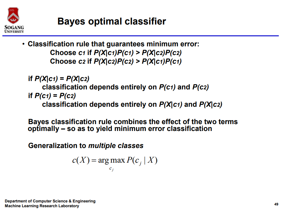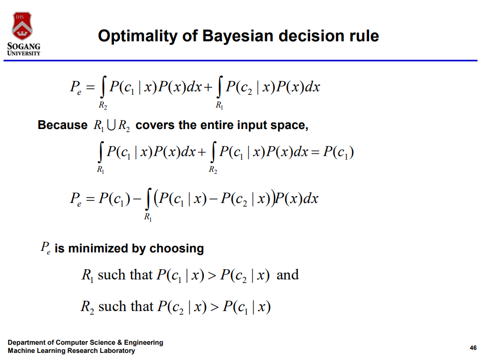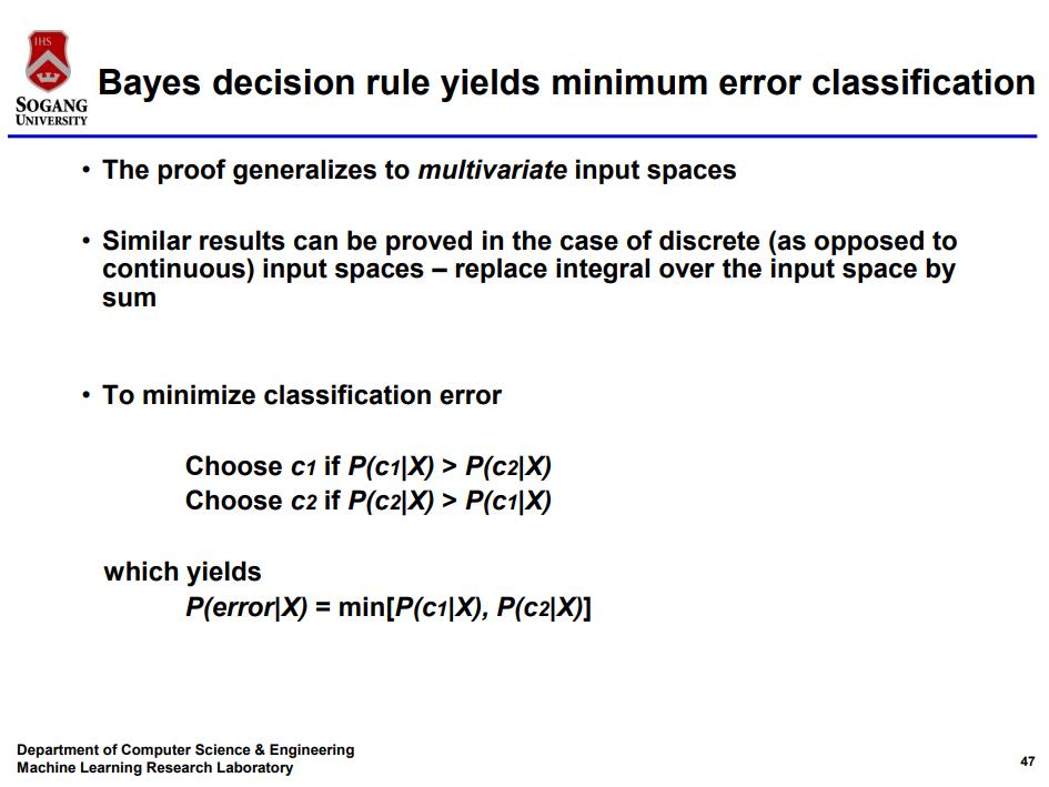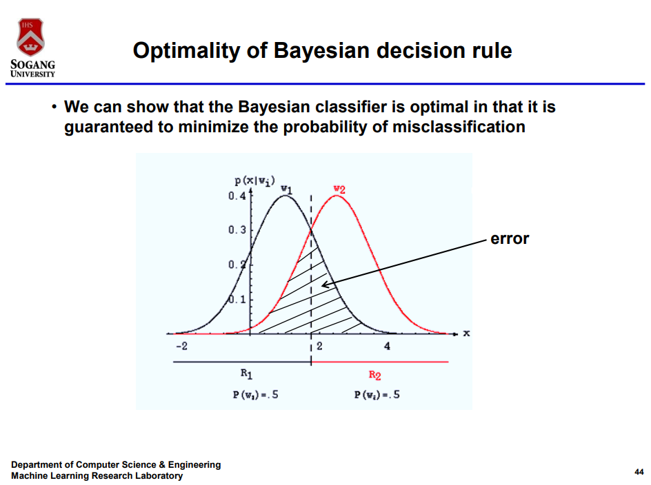 Bayesian Classifier가 오류 확률을 최소화 해 준다는 것이다.